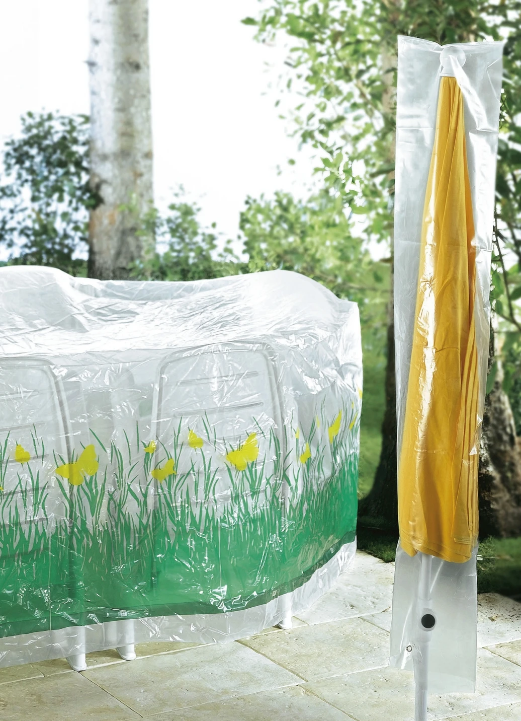 Abdeckhüllen aus reißfestem Kunststoff in der Ausführung Schutzhülle für Sonnenschirm bis 2,5 m.