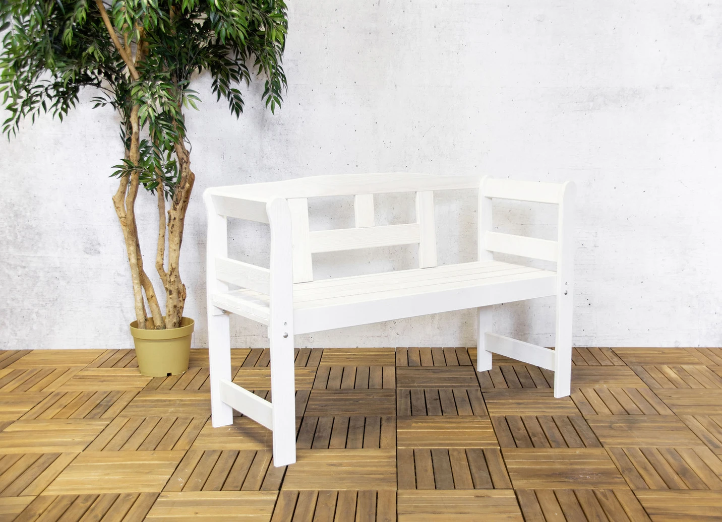 Bank aus Pinienholz in Weiss.