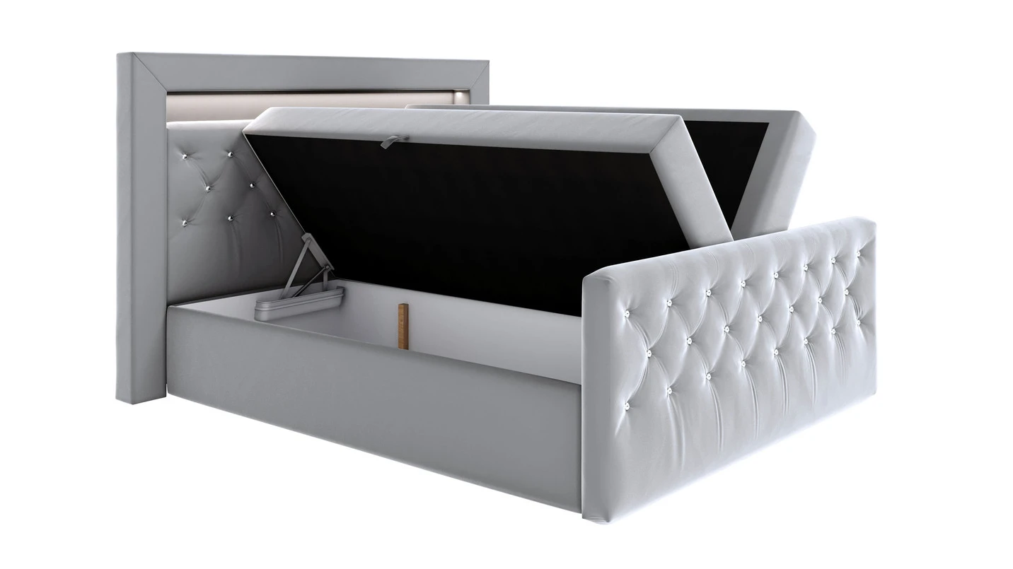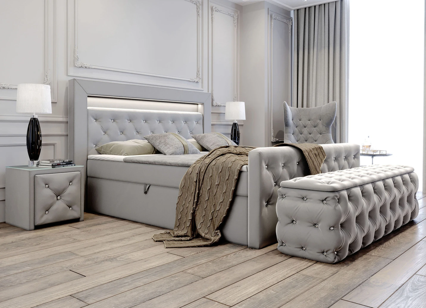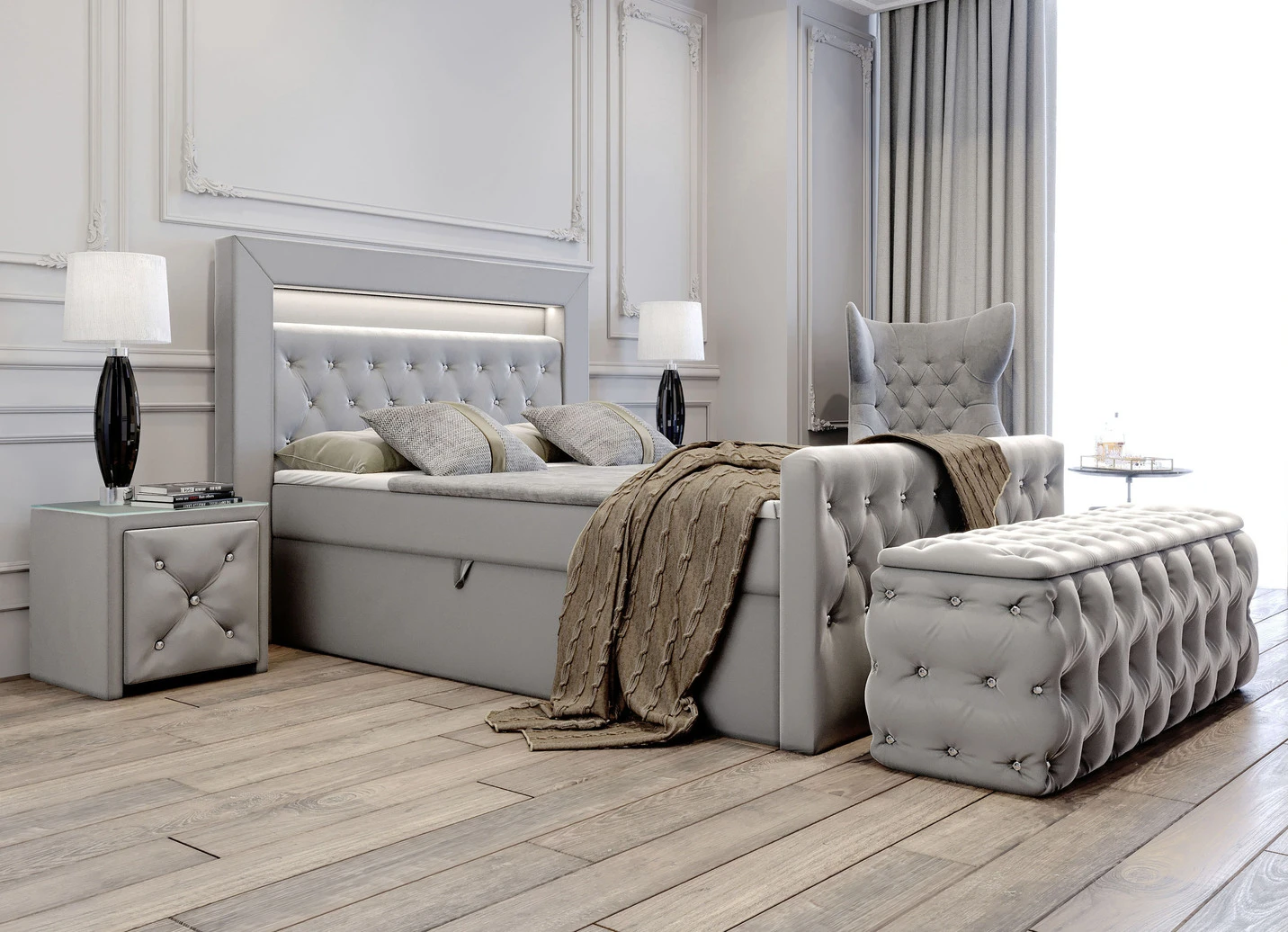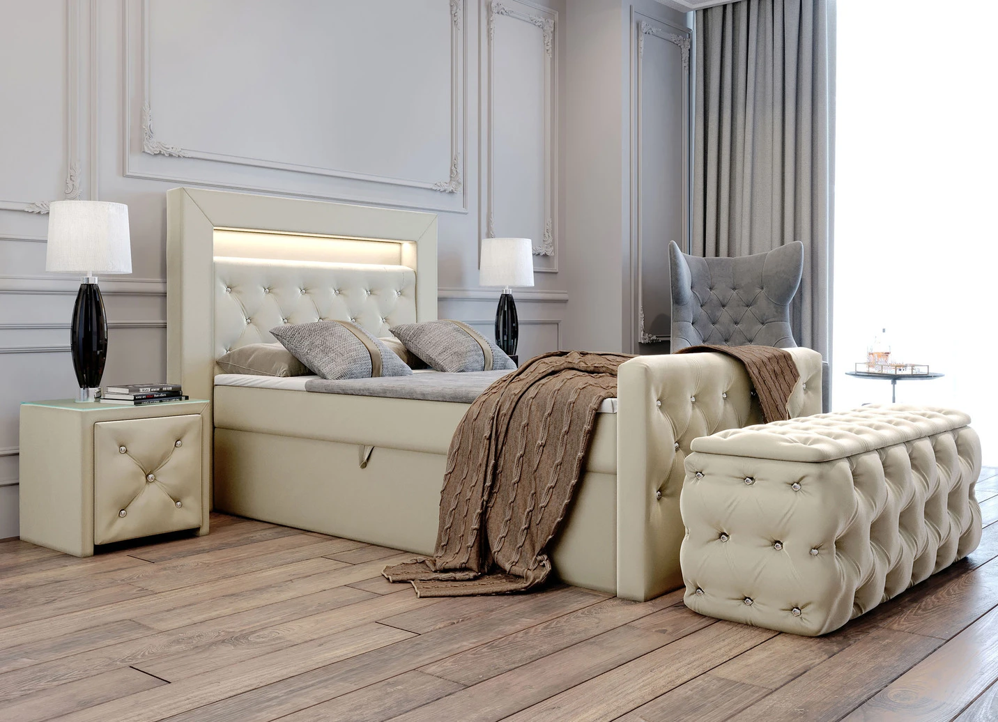 Boxspringbett mit LED-Beleuchtung, Topper und Nachttisch