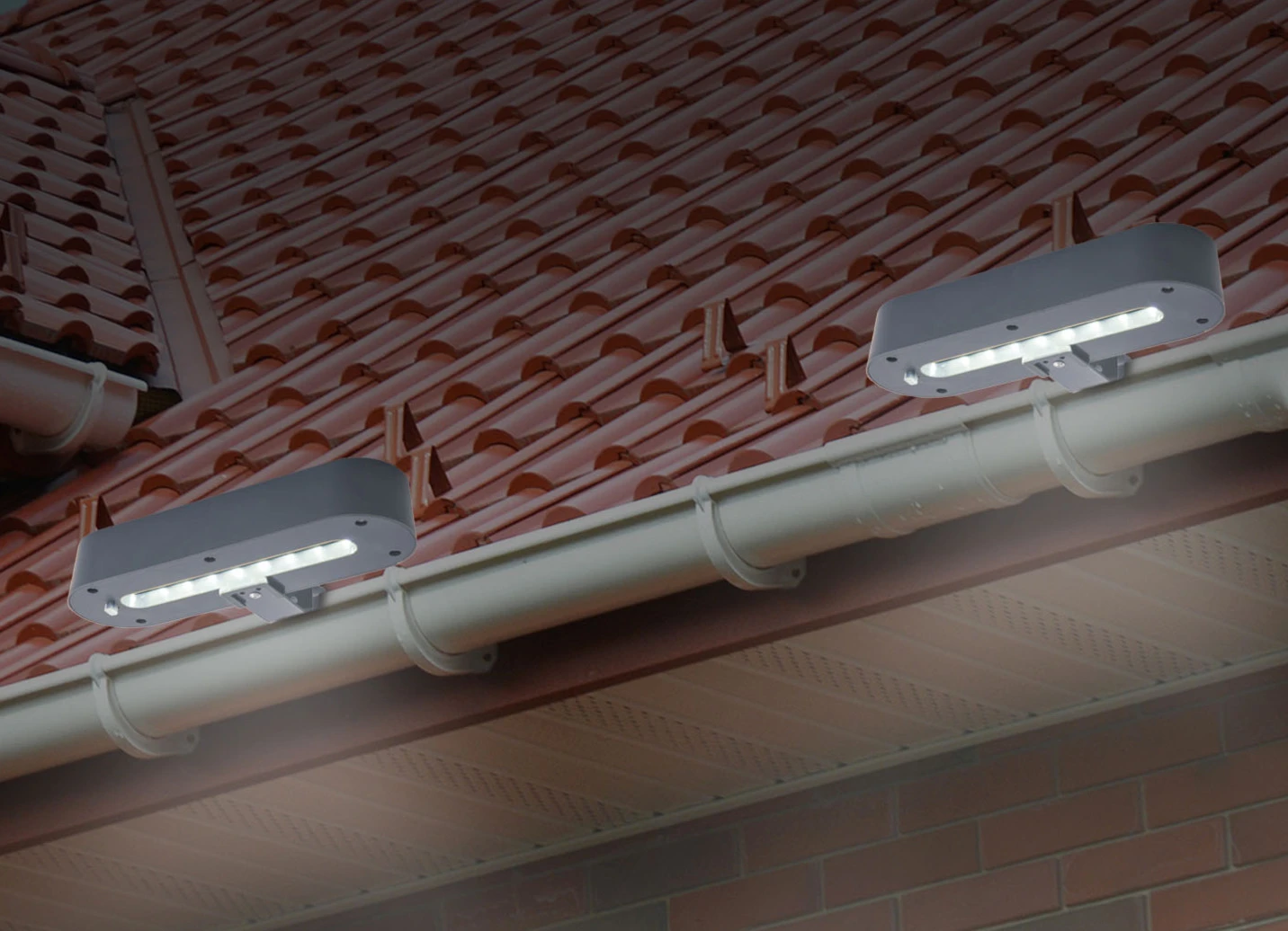 Dachrinnenleuchten, 2er-Set, mit stabiler Halterung