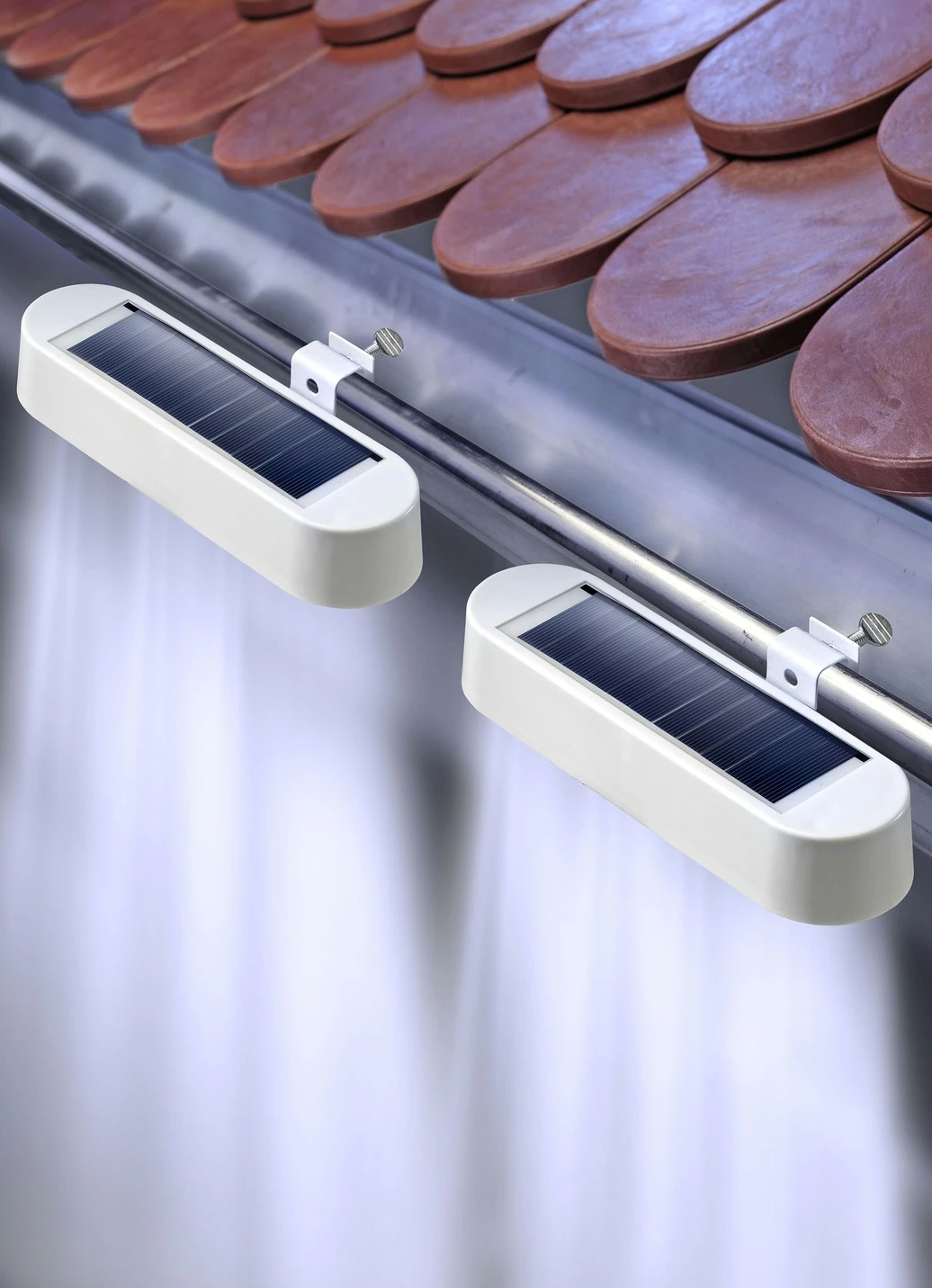 Dachrinnenleuchten, 2er-Set, mit stabiler Halterung in Weiss.