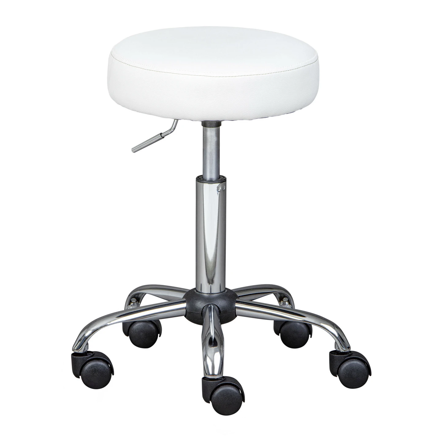 Praktischer Drehhocker mit chromfarbenem Gestell. Die Sitzhöhenverstellung von 50–66 cm wird mittels Gaslift über den Hebel unter der gepolsterten Sitzfläche ausgelöst. Der Hocker verfügt über 5 gebremste Sicherheitsrollen für Teppichböden. Der Kunstlederbezug (100% Polyurethan) ist besonders pflegeleicht. Maße: ø 33 cm, Höhe 50–66 cm. Mit Aufbau-Anleitung zur einfachen Endmontage