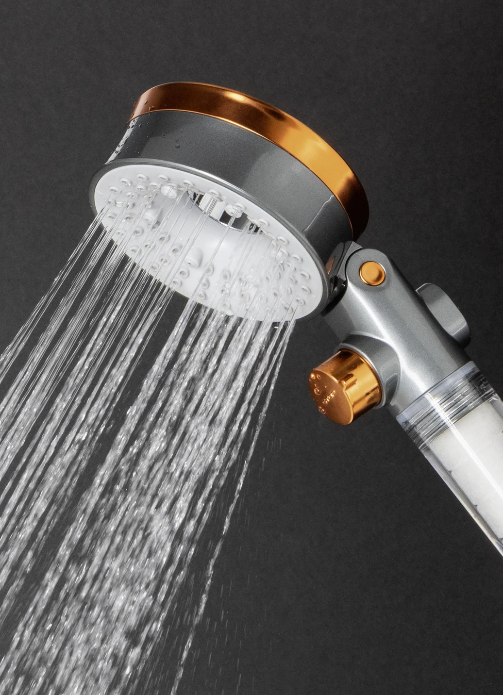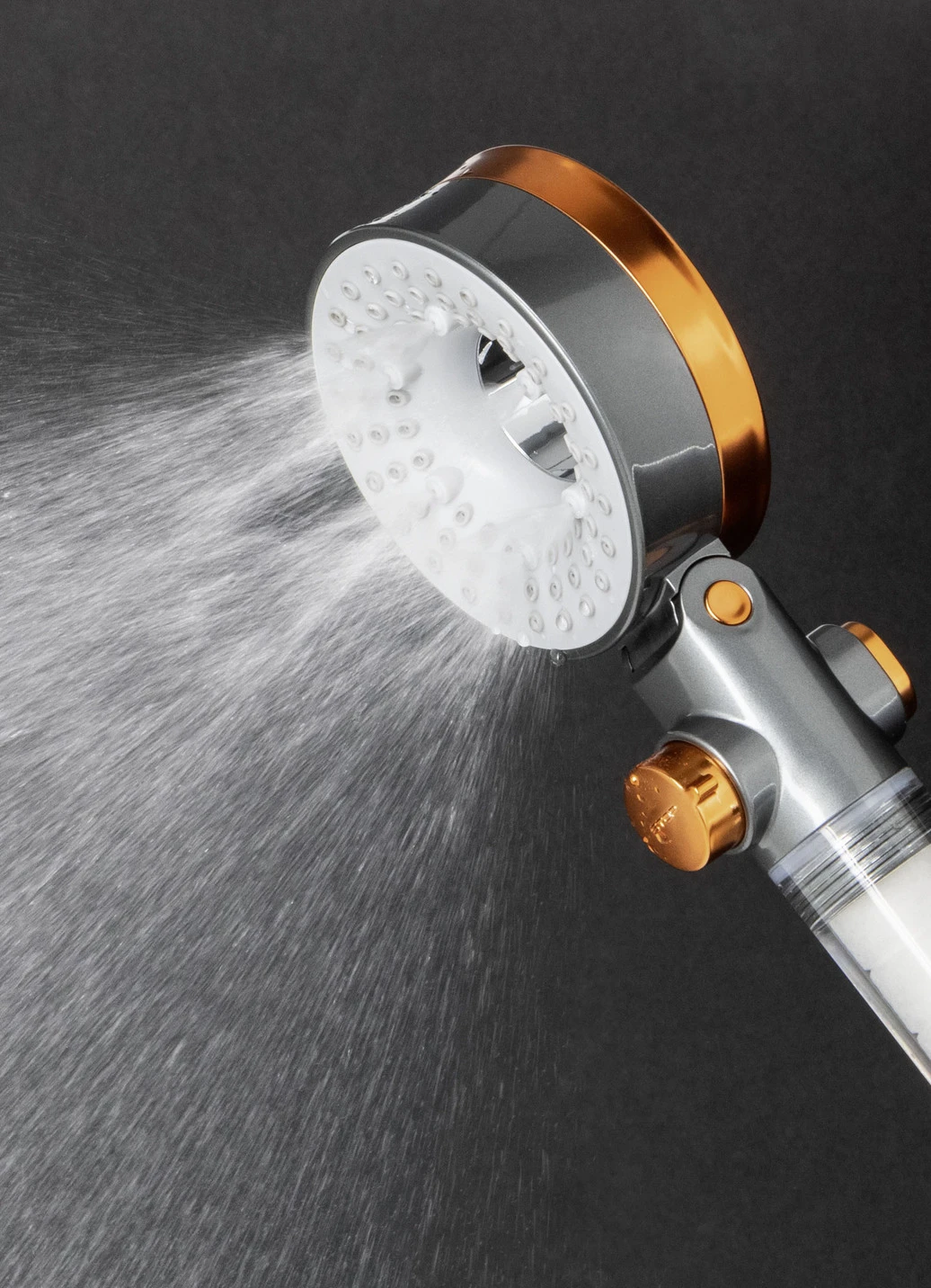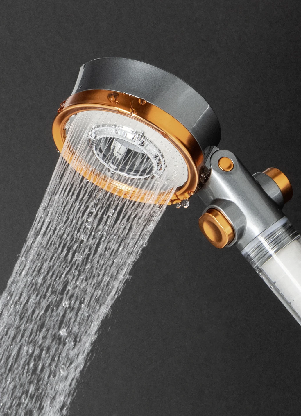Duschkopf in Anthrazit-Orange.