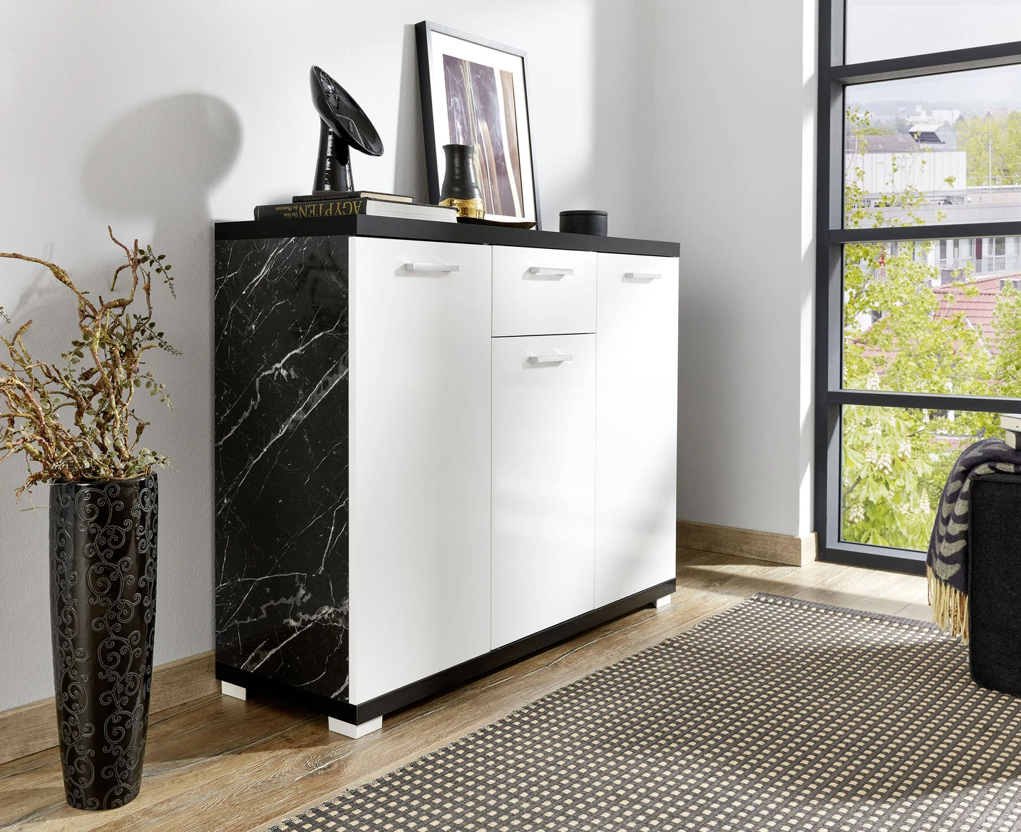 Elegante und moderne Kommoden-Serie in der Ausführung Kommode, 2-türig und in Weiß-Mar.Schw..