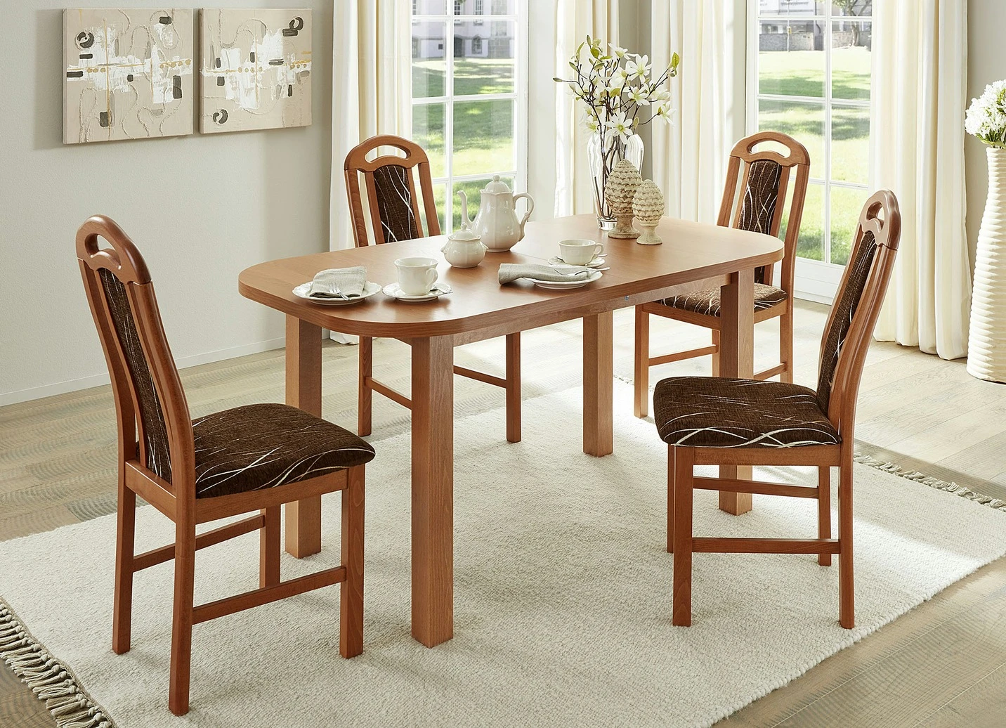Essgruppe, 5-teilig in Nussbaum-Beige.