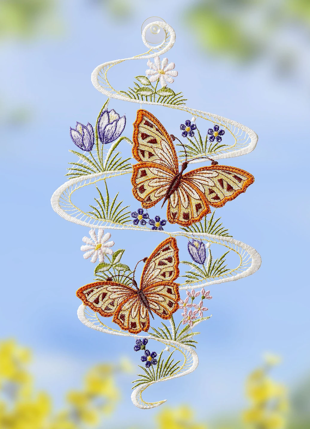 Fensterbild Schmetterlingstanz Aus Echter Plauener Spitze
