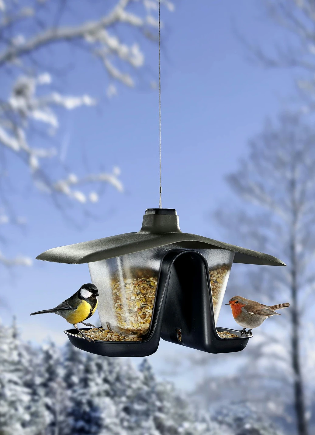 Ein attraktives Zuhause für Vögel ist dieses Vogelhäuschen. Dank seiner transparenten Außenwände aus Polypropylen sehen Sie den Futterstand, das Dach schützt vor Regen. Durch kleine Löcher kann Regenwasser problemlos ablaufen. Per Schnur aufhängen oder einfach über einen dicken Ast oder Geländer hängen.