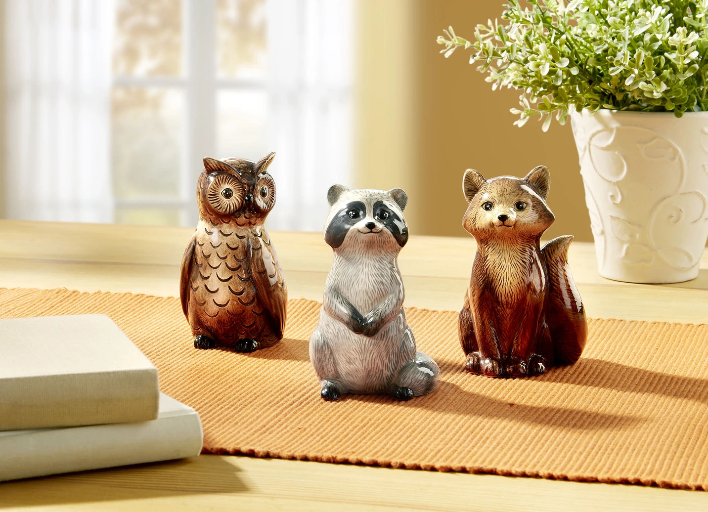 Dieses entzückende Waldtrio ist einfach zum Verlieben! Liebevoll gefertigte Eule, Fuchs und Waschbär aus Dolomit und von Hand bemalt.