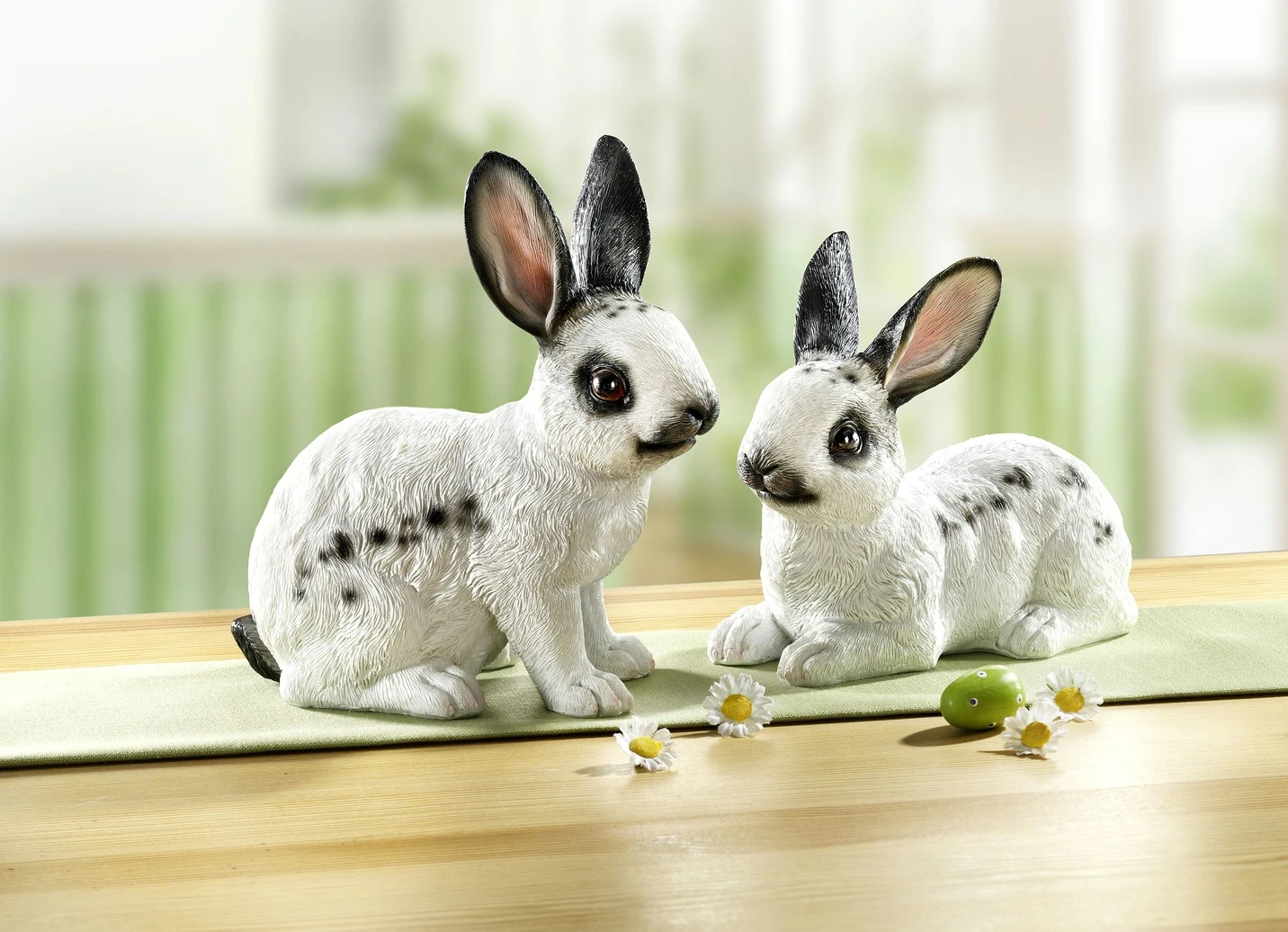 Diese putzigen Häschen im 2er-Set sind einfach zum Verlieben! Sie wurden täuschend echt aus Polyresin gefertigt und detailliert von Hand bemalt.