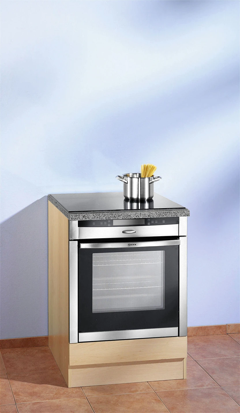 - Herd-Umbau. Arbeitsplatte ohne Ausschnitt für Kochfeld. Maße: B60xH85xT60 cm