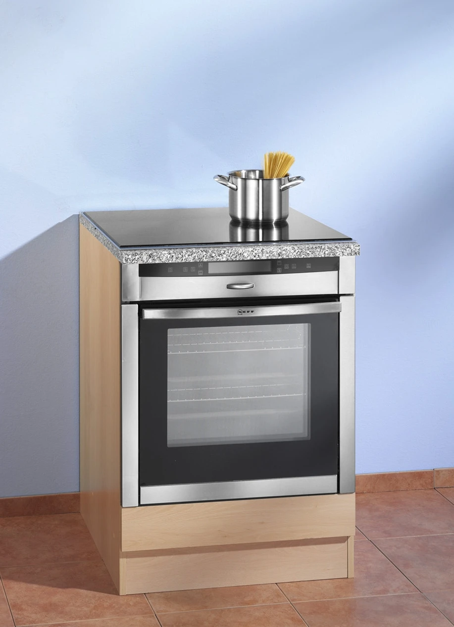- Herd-Umbau. Arbeitsplatte ohne Ausschnitt für Kochfeld. Maße: B60xH85xT60 cm