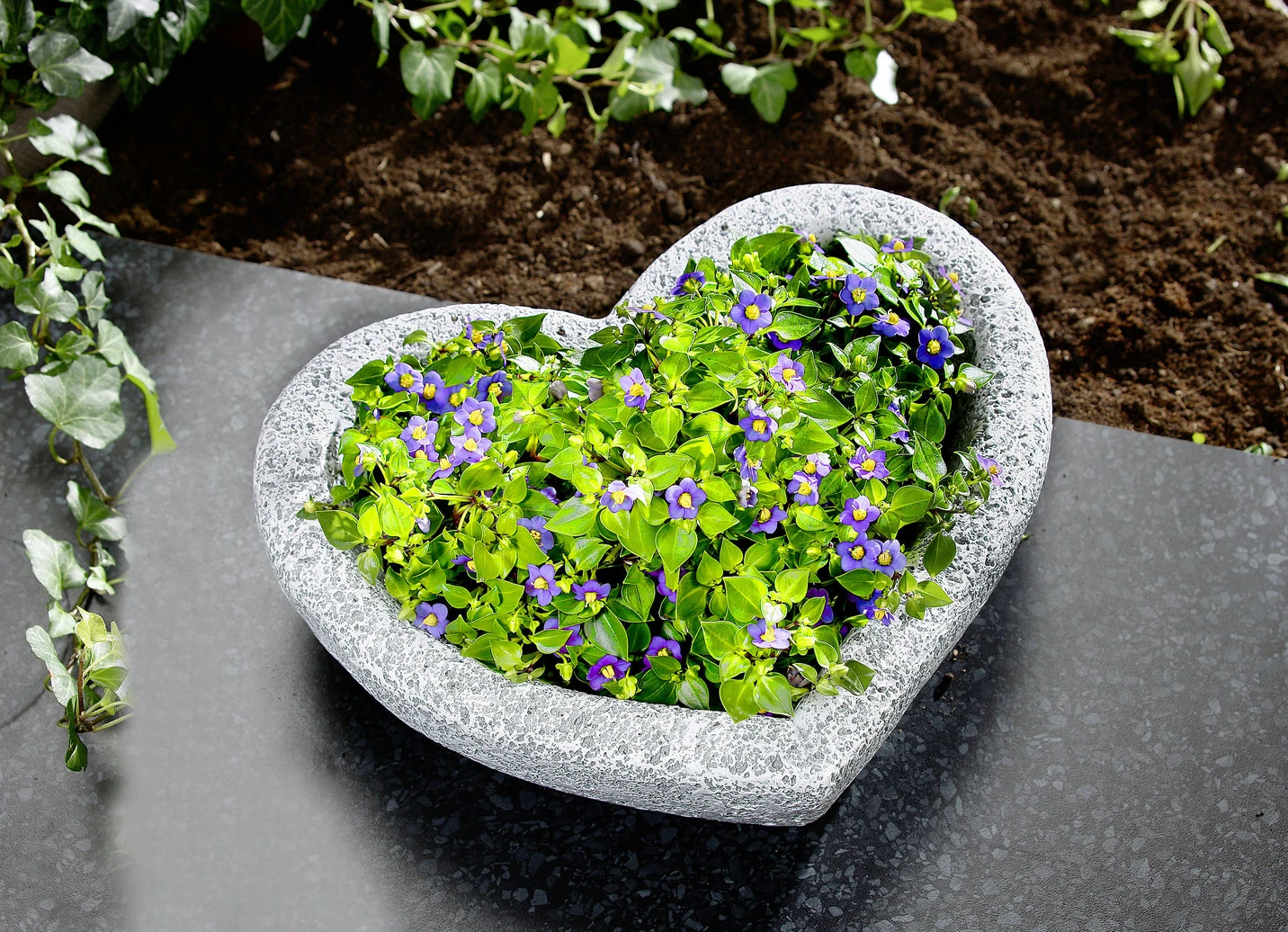 Wenn Blumen zur Herzensangelegenheit werden, darf diese Pflanzschale aus wetterfestem Polyresin nicht fehlen. Sie ist direkt bepflanzbar und für den Innen- und Außenbereich geeignet. Auch ideal als Grabschmuck.