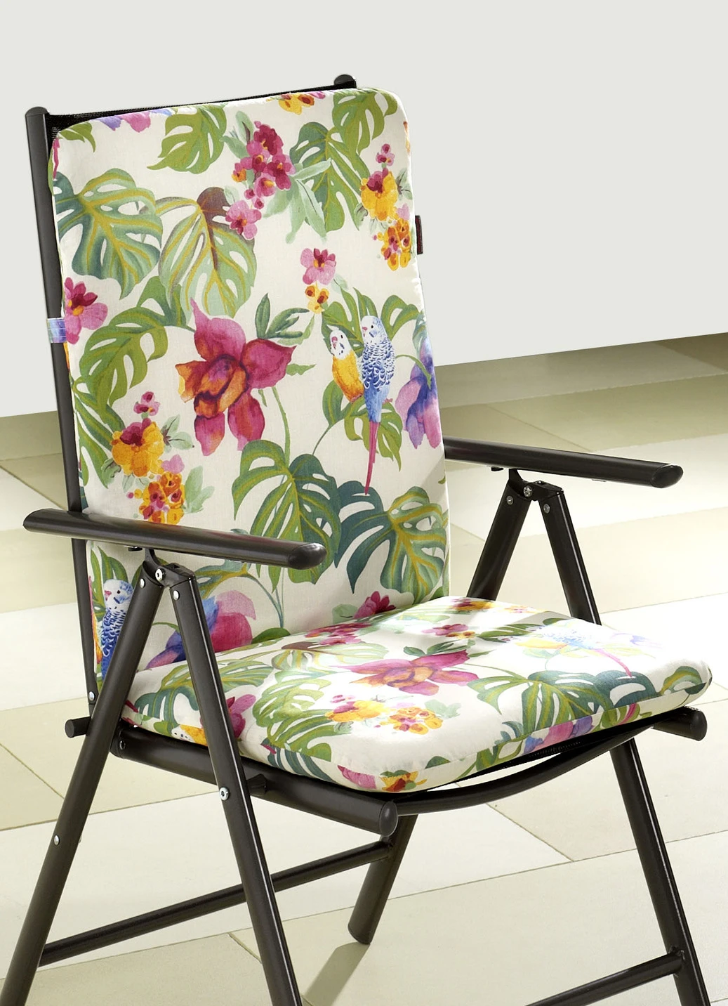 In Deutschland gefertigte Auflage. Vliesummantelte Schaumstoffplatte mit Bezug aus 50% Baumwolle und 50% Polyester. Mit Haltebändern.