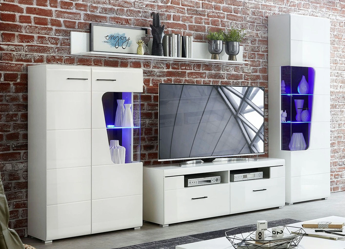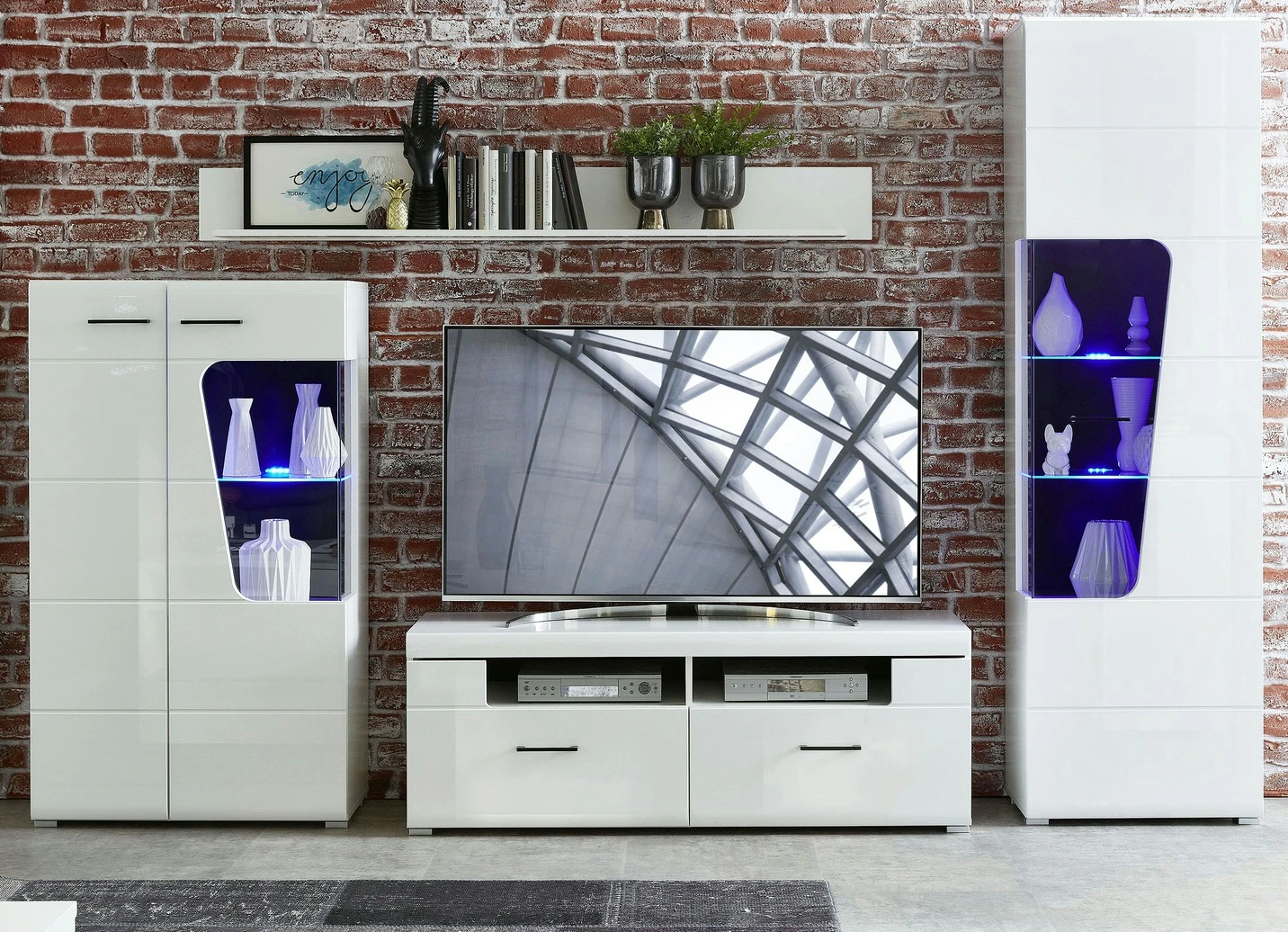 Hochwertigen Wohnzimmermöbel mit LED-Beleuchtung ohne Aufbauservice und in Weiss.