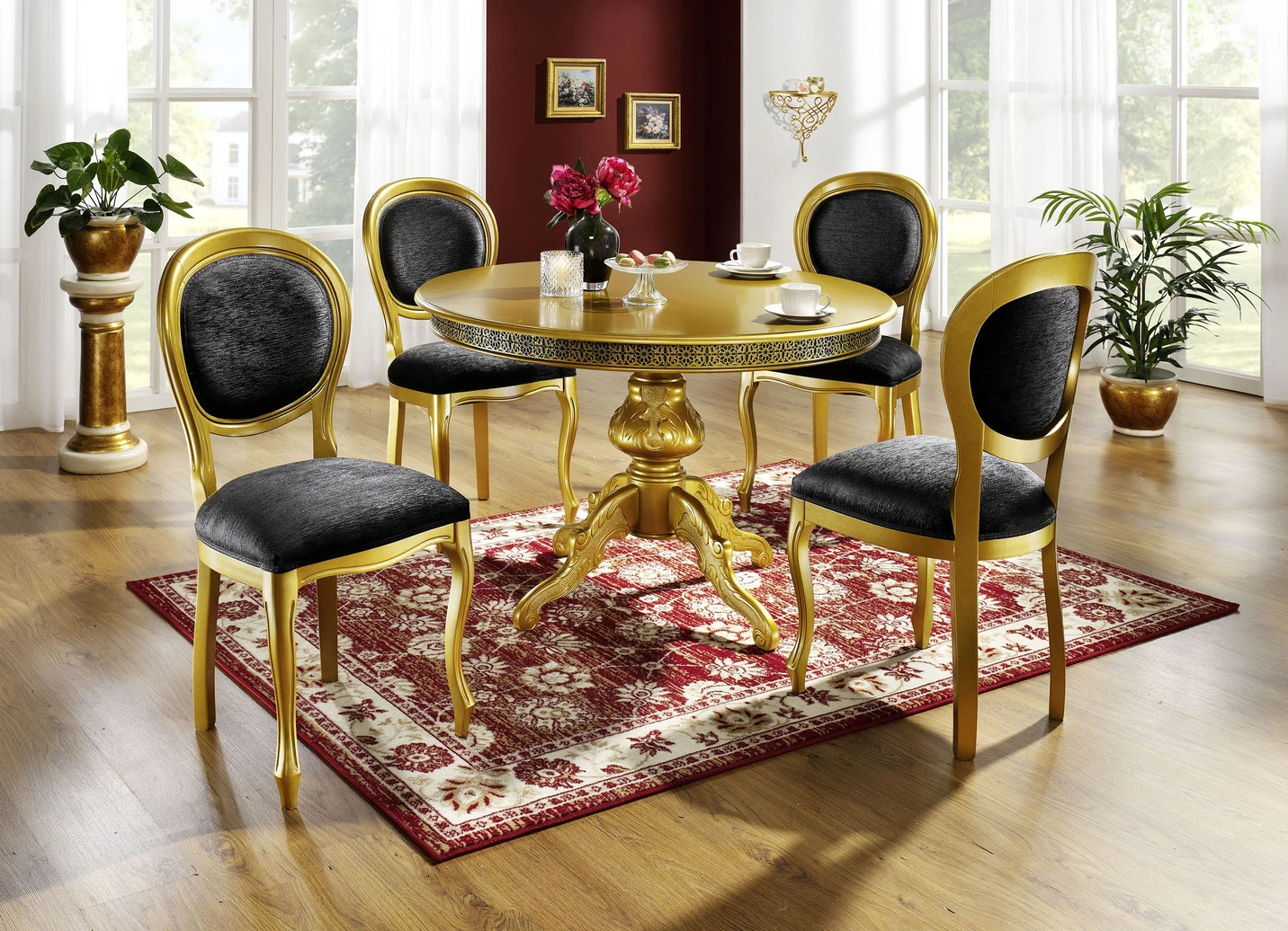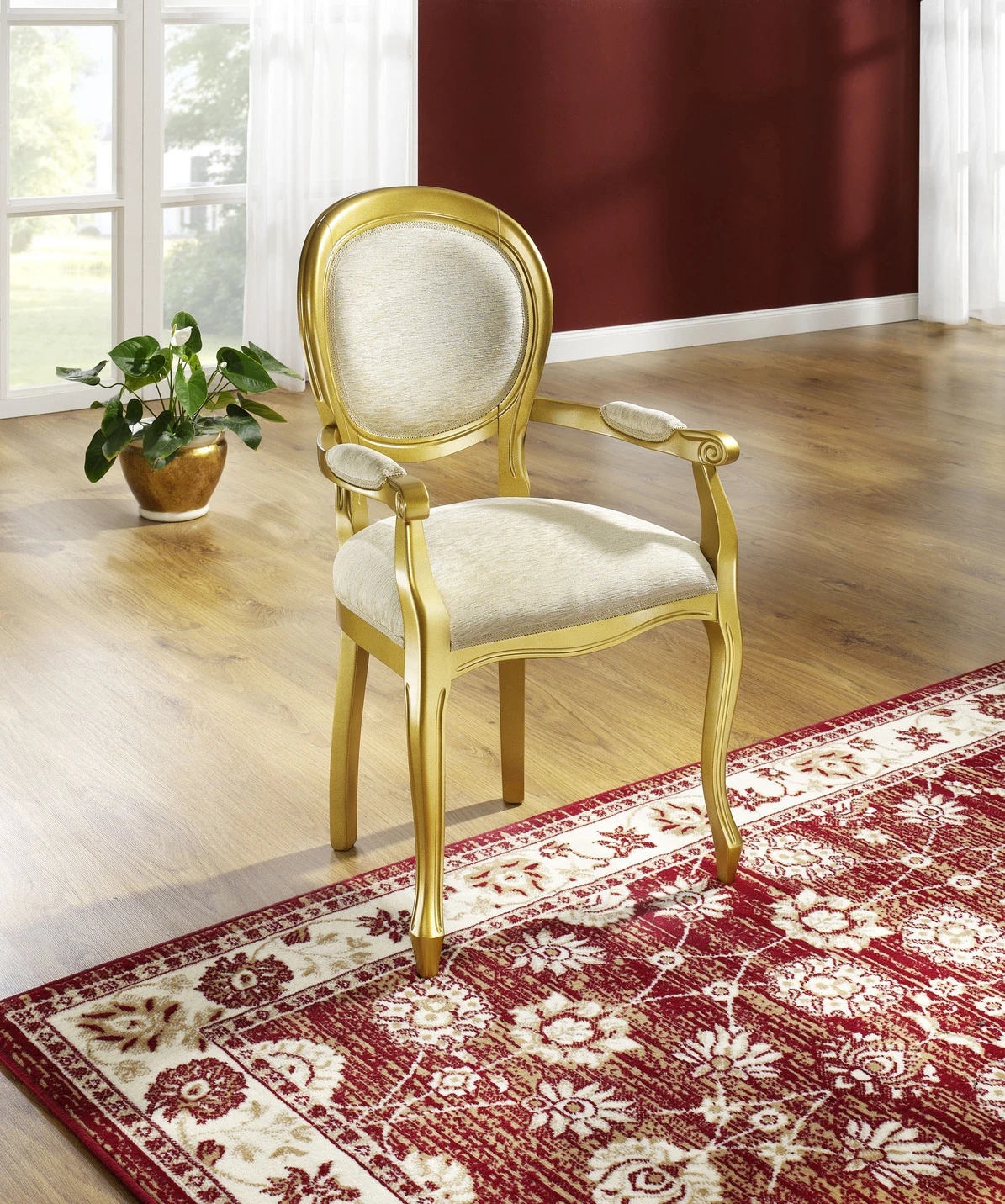 Italienische Stühle mit Federkernpolsterung in der Ausführung Armlehnenstuhl und in Gold-Beige.