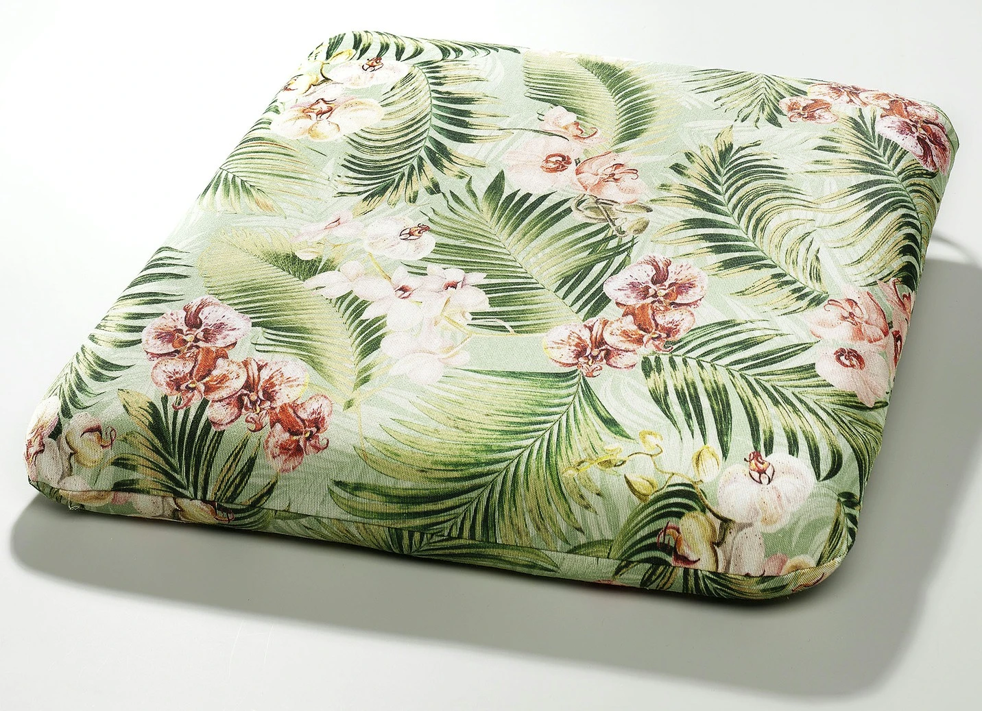 Kissen und Auflagen in mustergültiger Qualität im Dessin BANGKOK, in der Ausführung Sitzkissen 2er-Set sowie in Grün.