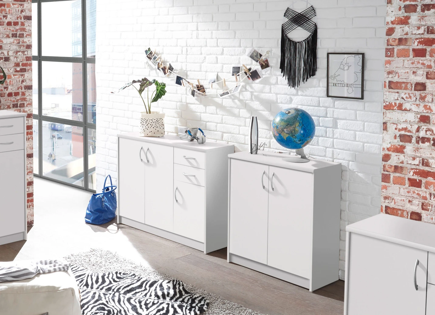 Kombifreundliche Kommode mit silberfarbenen Griffen
