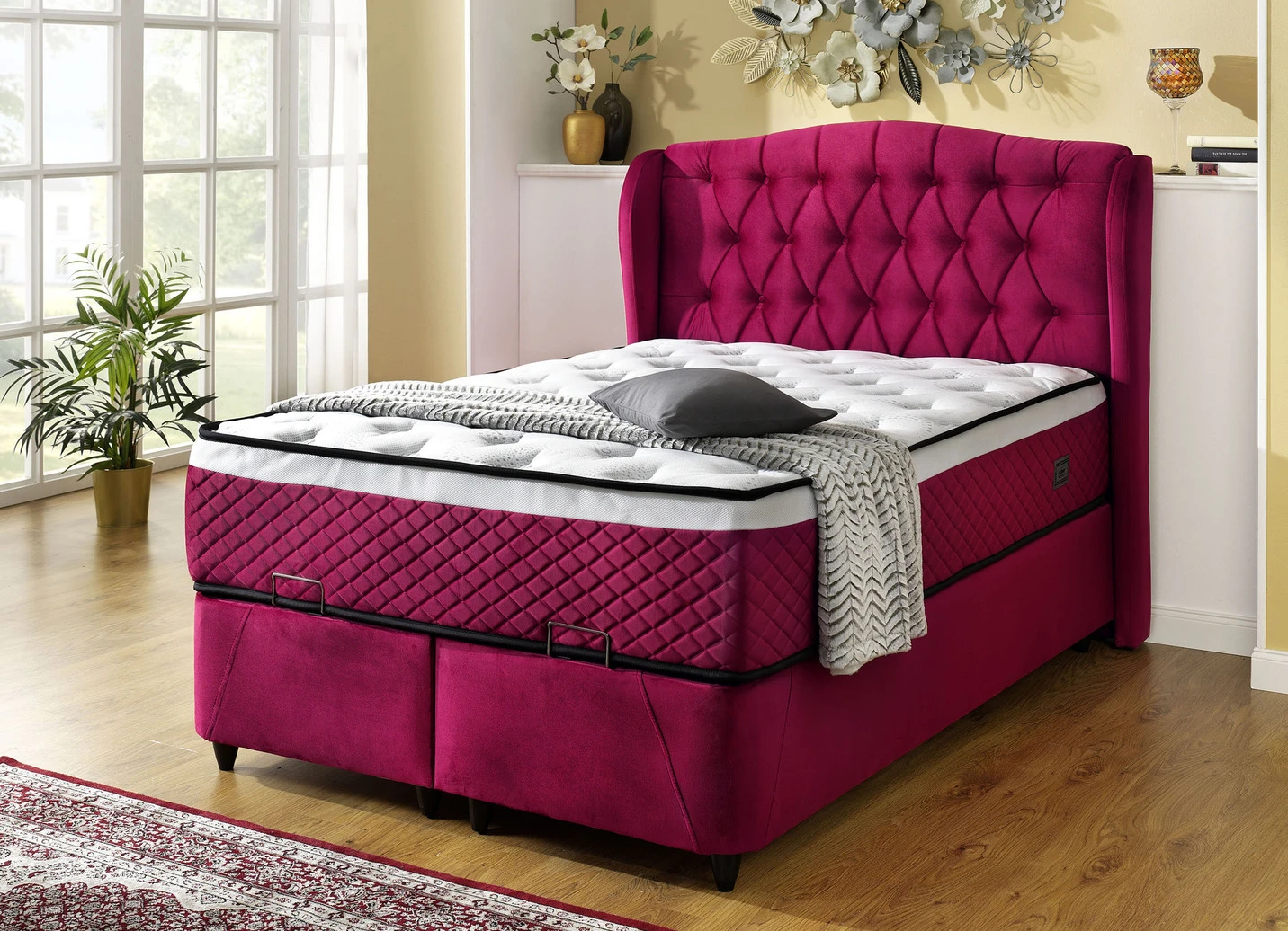 Komfortables Boxspringbett für traumhaft schöne Nächte mit einer Liegefläche von 90/200 cm und in Rot.