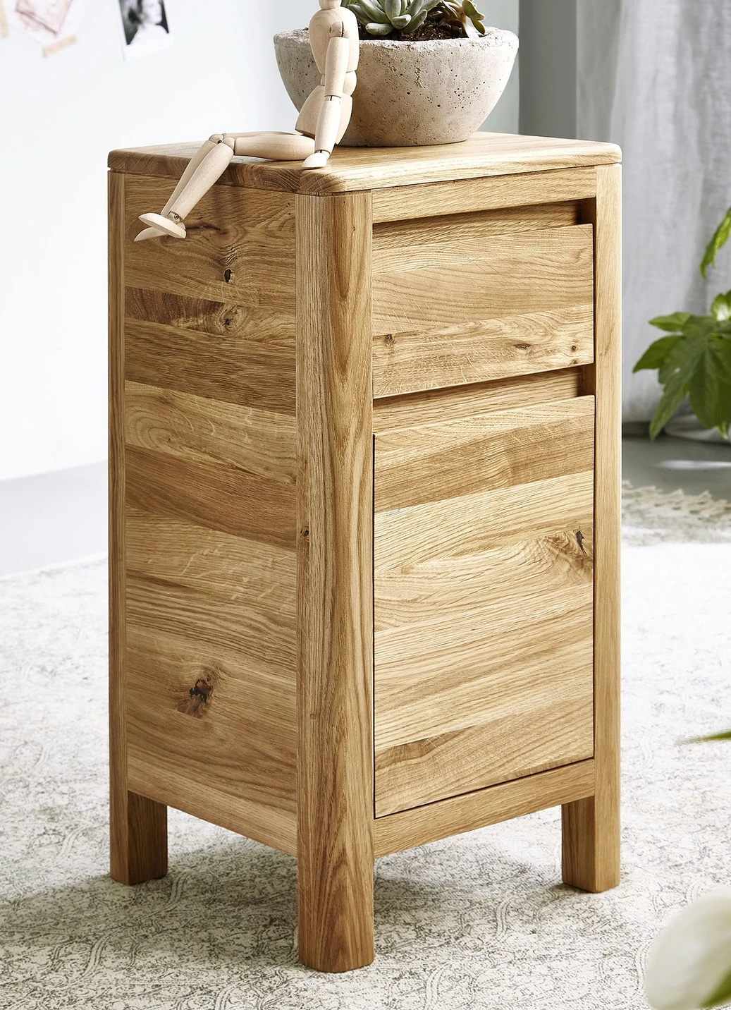 Besonders kombinierfreundliche, hochwertige Möbel-Serie mit gerundeten Ecken und Kanten, die mit ihrem natürlichen Charme zu begeistern weiß. Jeweils in geölter Ausführung aus massiver Kernbuche bzw. Wildeiche gefertigt. Schubladen auf Metallführungsschienen. Die Lieferung erfolgt jeweils aufgebaut