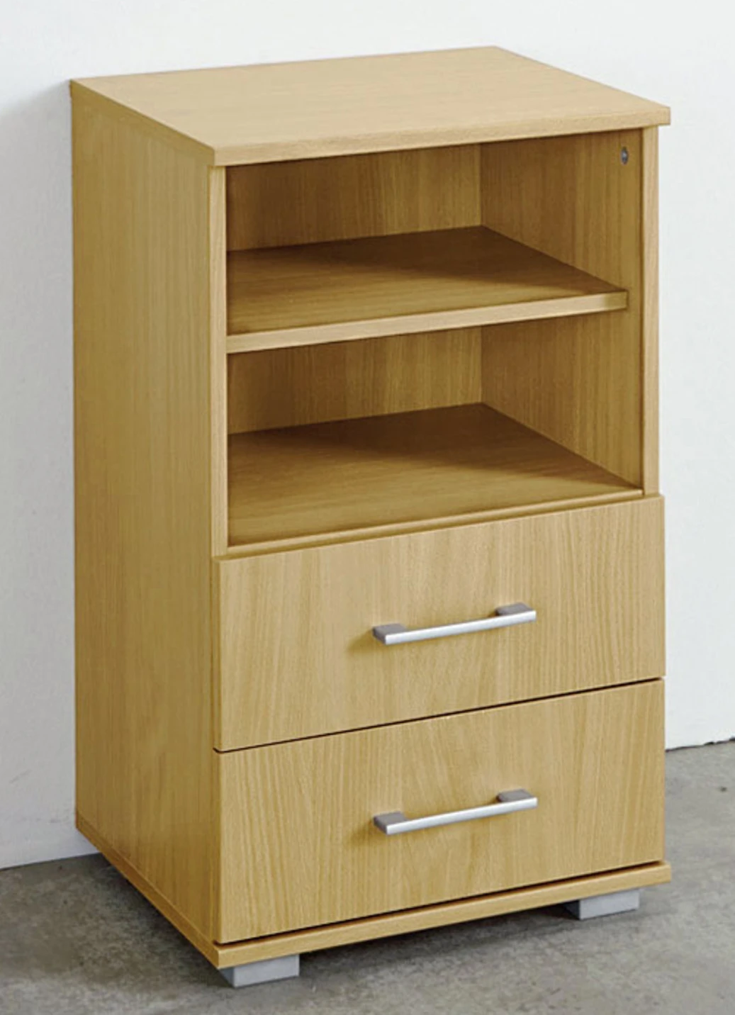 Kommode mit 2 Nischen, Höhe 71 cm: Oben 2 offene Fächer, darunter 2 Schubladen. Maße: je B41 cm