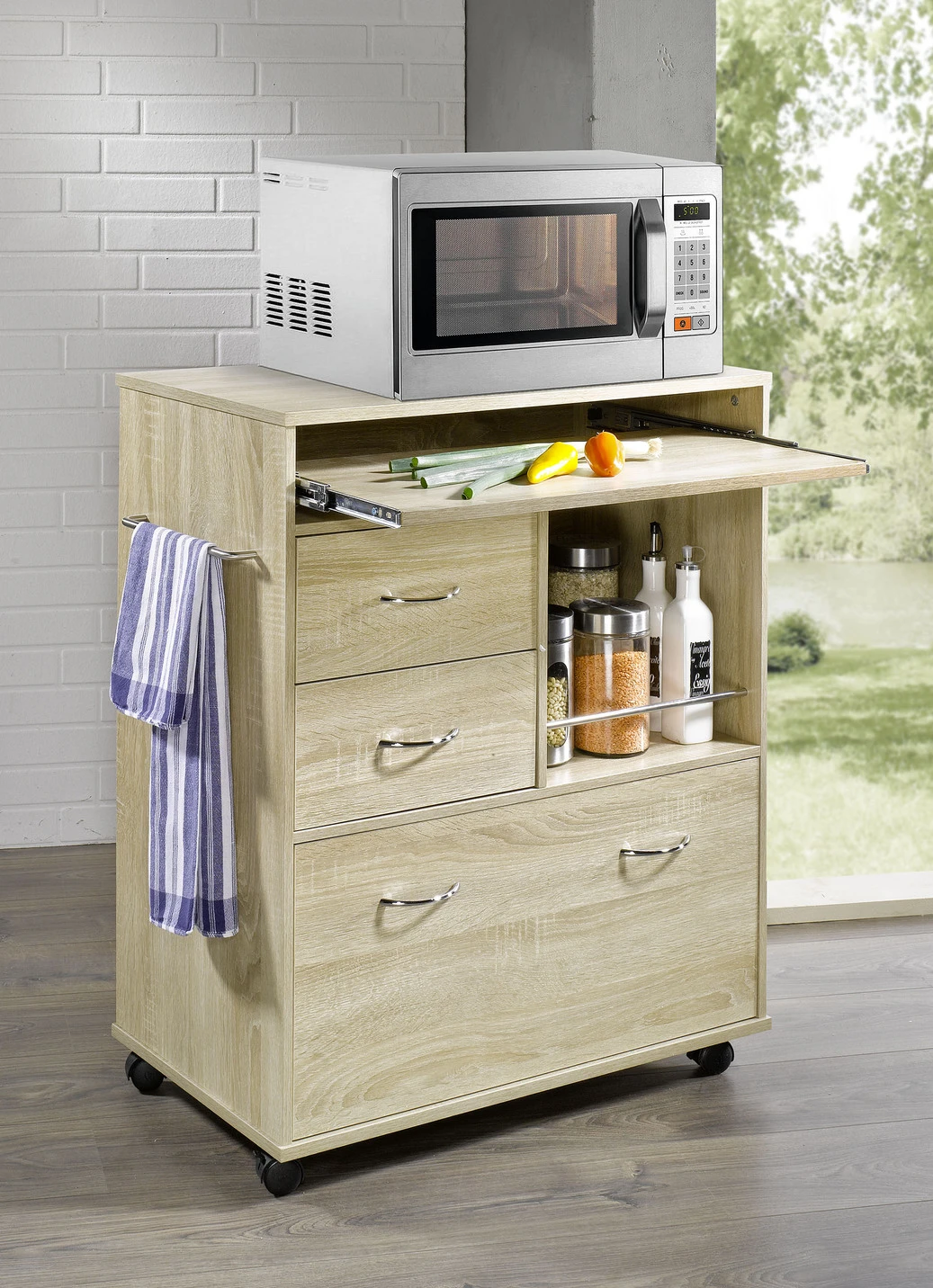 Küchenrollwagen mit ausziehbarer Arbeitsfläche in Eiche Sonoma.