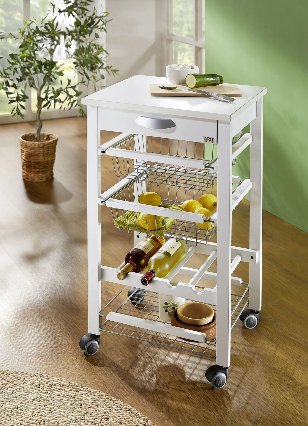 Küchenwagen aus massivem Buchenholz in Weiss.