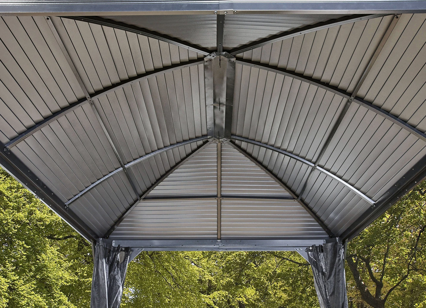 - Dach aus langlebigem, galvanisch beschichtetem Stahl