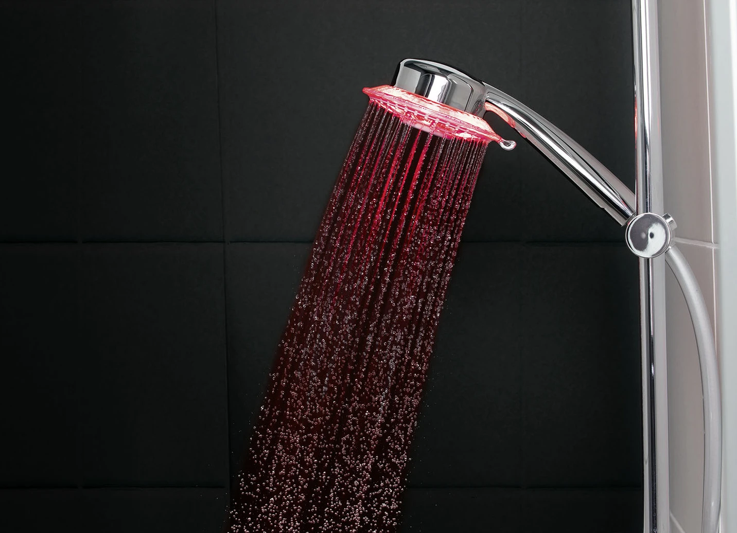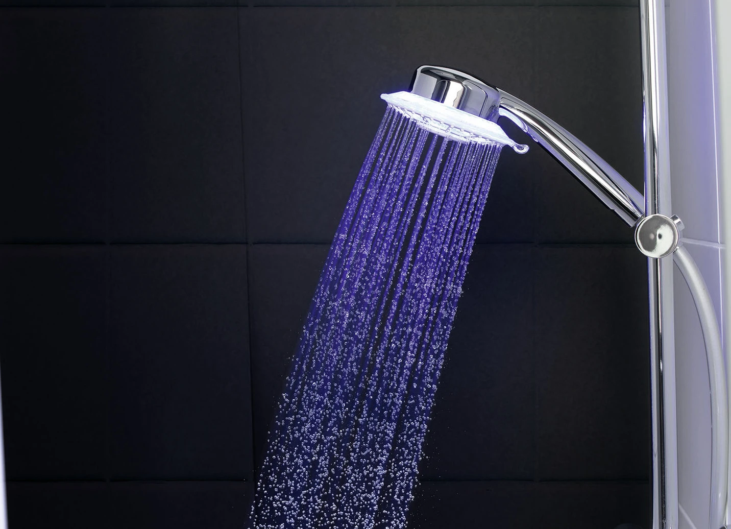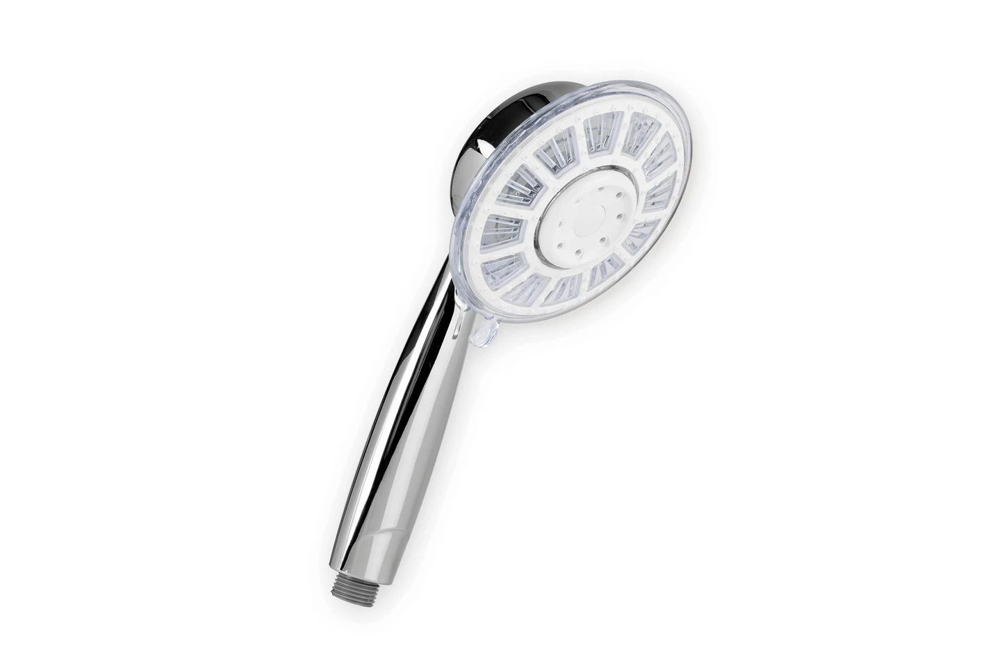 LED-Duschkopf mit Duschzeit-Indikator in Chrom.