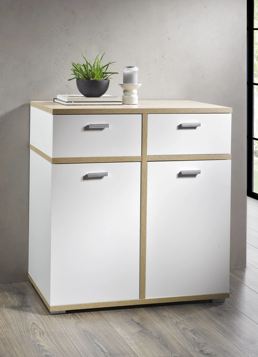 Moderne und kombistarke Kommode, 2-türig in Weiss-Sonoma Eiche Hell.