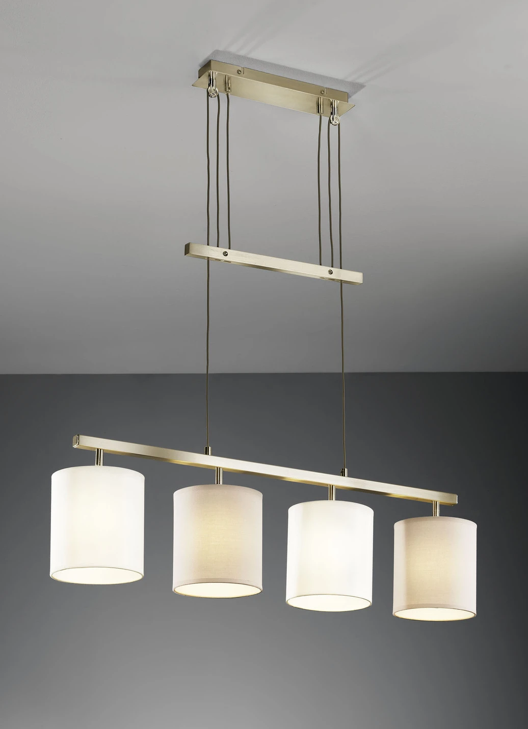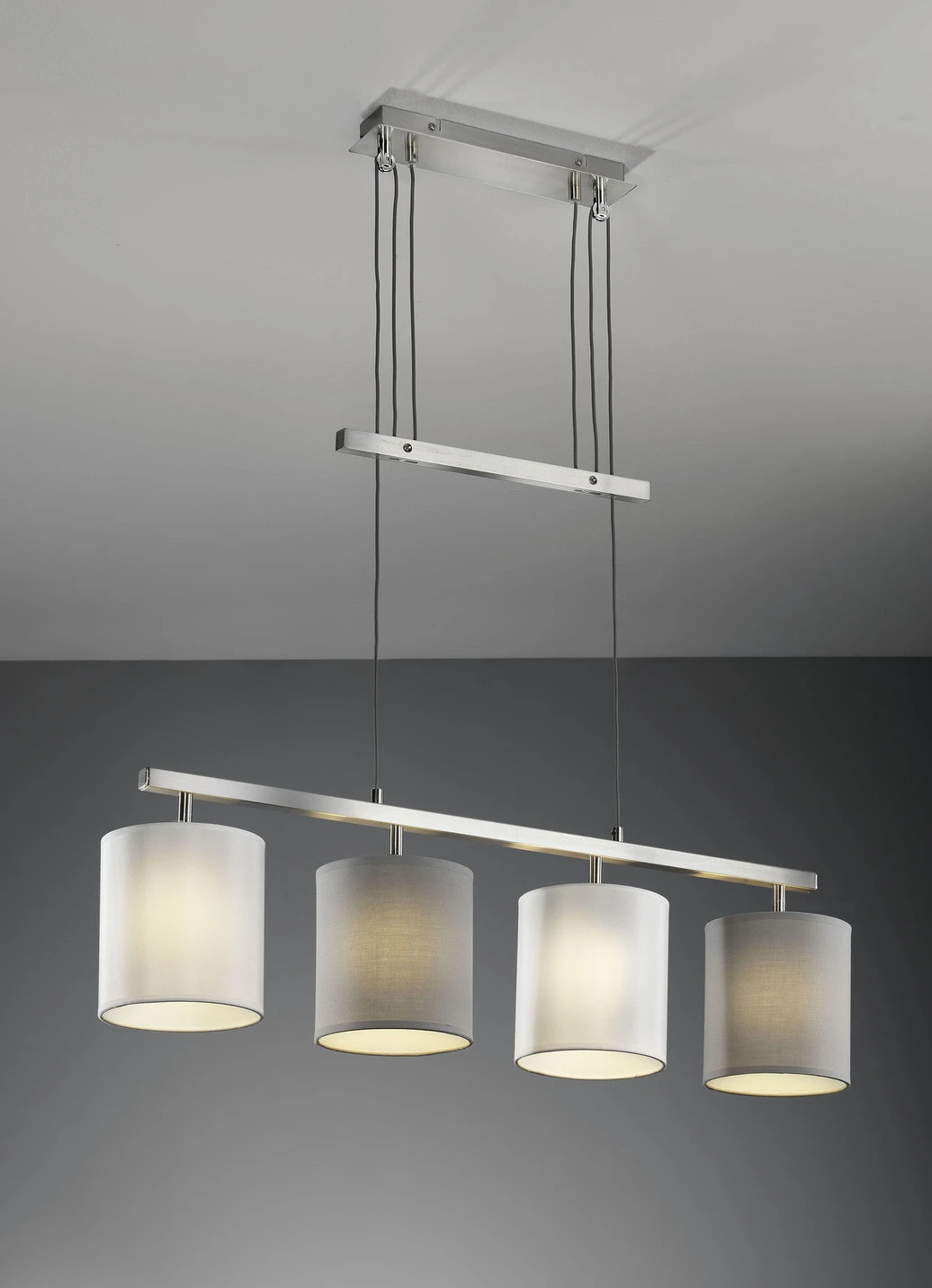 Beleuchten Sie Ihren Wohnraum ab jetzt besonders stilvoll und edel – mit diesen schönen Leuchten aus Stahl mit Stoff-Lampenschirmen (60% Polyester, 40% Baumwolle)! In Edelstahl mit Schirmen in Grau und Weiß, in Messing in Braun und Beige. Jeweils 4x E27, maximal 40 Watt pro Fassung, 230 Volt. Die Lieferung erfolgt ohne Leuchtmittel. Einfache Endmontage