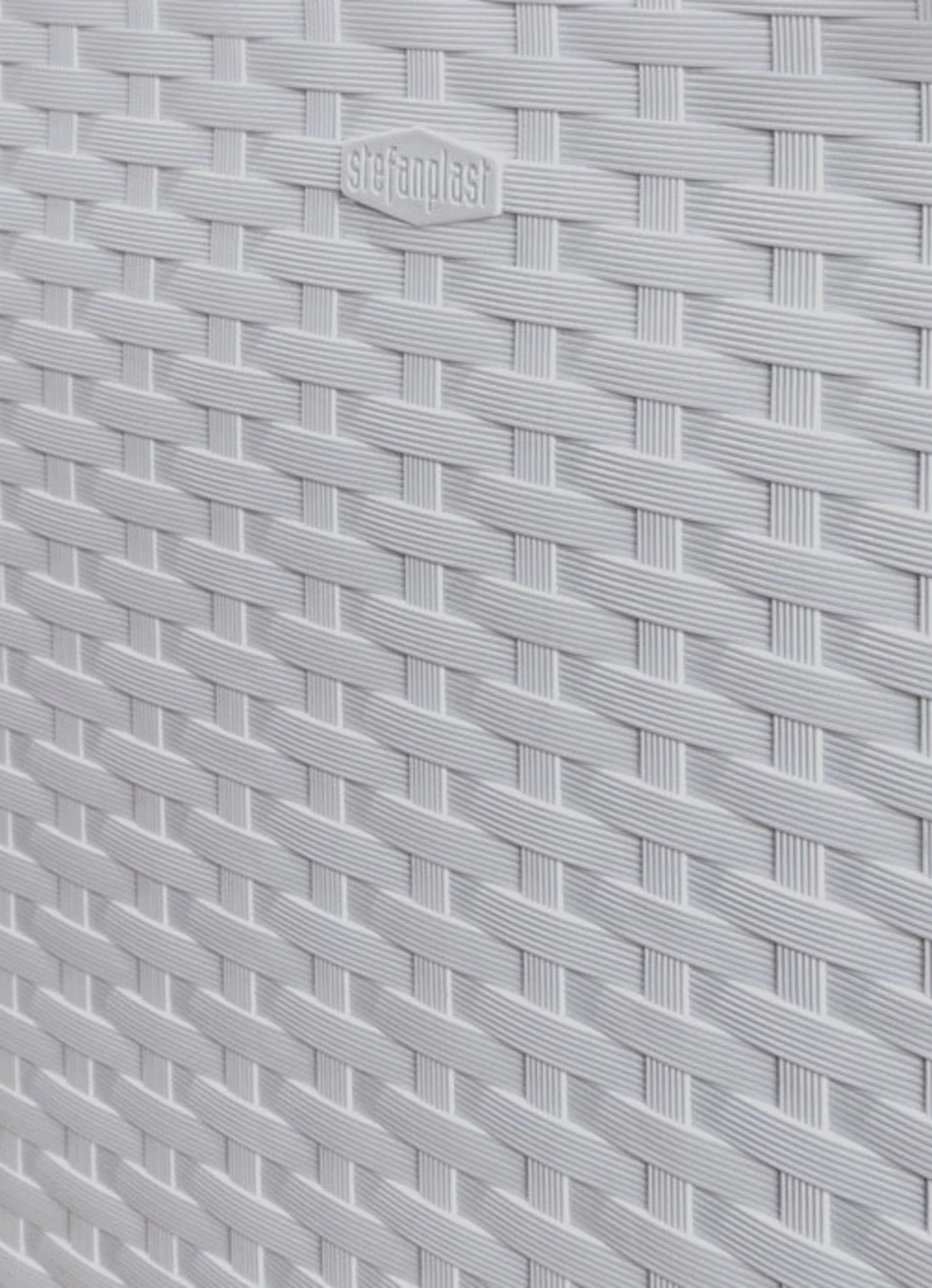 Pflanzkasten in moderner Rattan-Optik in der Ausführung Pflanzkasten, klein, ohne Spalierwand und in Weiss.