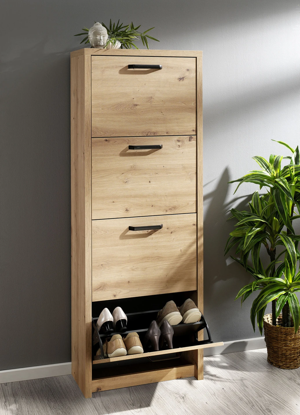 Praktischer Schuhkipper in der Ausführung Mit 3 Klappfächern und in Asteiche.