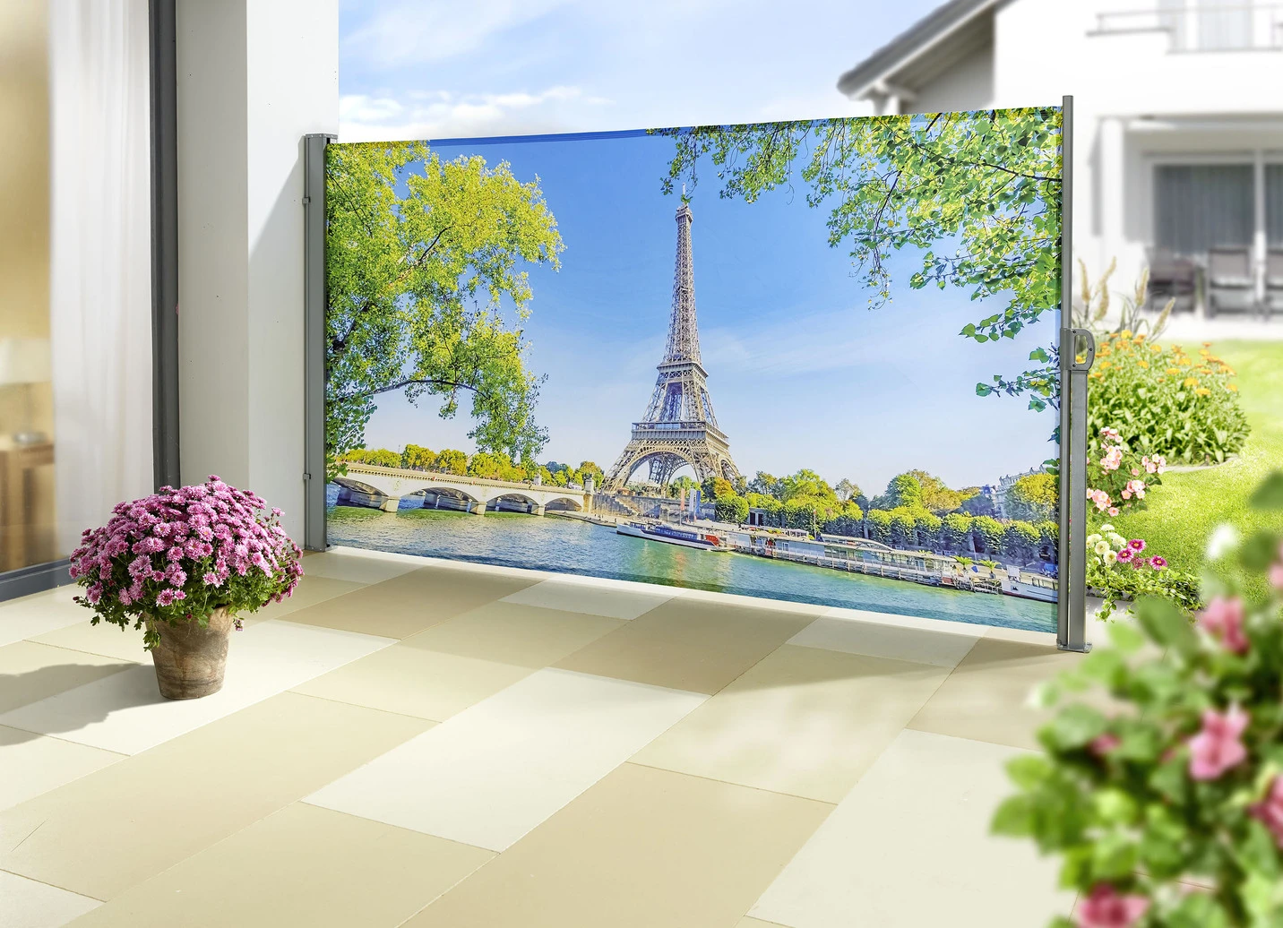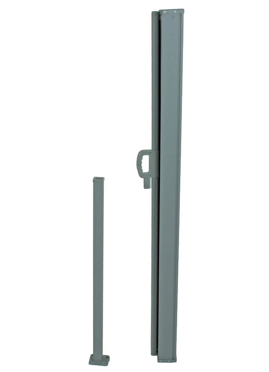 Die Seitenmarkise ist ein praktischer Wind- und Sichtschutz. Sie hält Wind fern, schützt Sie gegen die tief stehende Sonne und natürlich auch vor neugierigen Blicken. Durch die praktische Konstruktion können Sie die Seitenmarkise jederzeit nach Belieben aufspannen. Für die Montage wird die Kassette einfach an der Hauswand montiert und der Haltepfosten im gewünschten Abstand (bis max. 3 m) am Boden befestigt. Mit dem ergonomischen Griff wird die Markise ganz leicht in den Haltepfosten eingehängt. Bespannung aus Polyester (180 g/m²) mit PU-Beschichtung. Gestell aus Aluminium und Stahl.