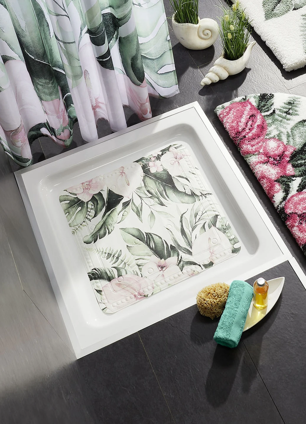 Mit einem wunderschönen Dessin aus Blumen und Blättern sind diese Sicherheits-Einlagen von Kleine Wolke gestaltet, welche für höhere Sicherheit beim Duschen und Baden sorgen sollen. Die Qualität: 100% PVC. Waschbar bis 40 °C