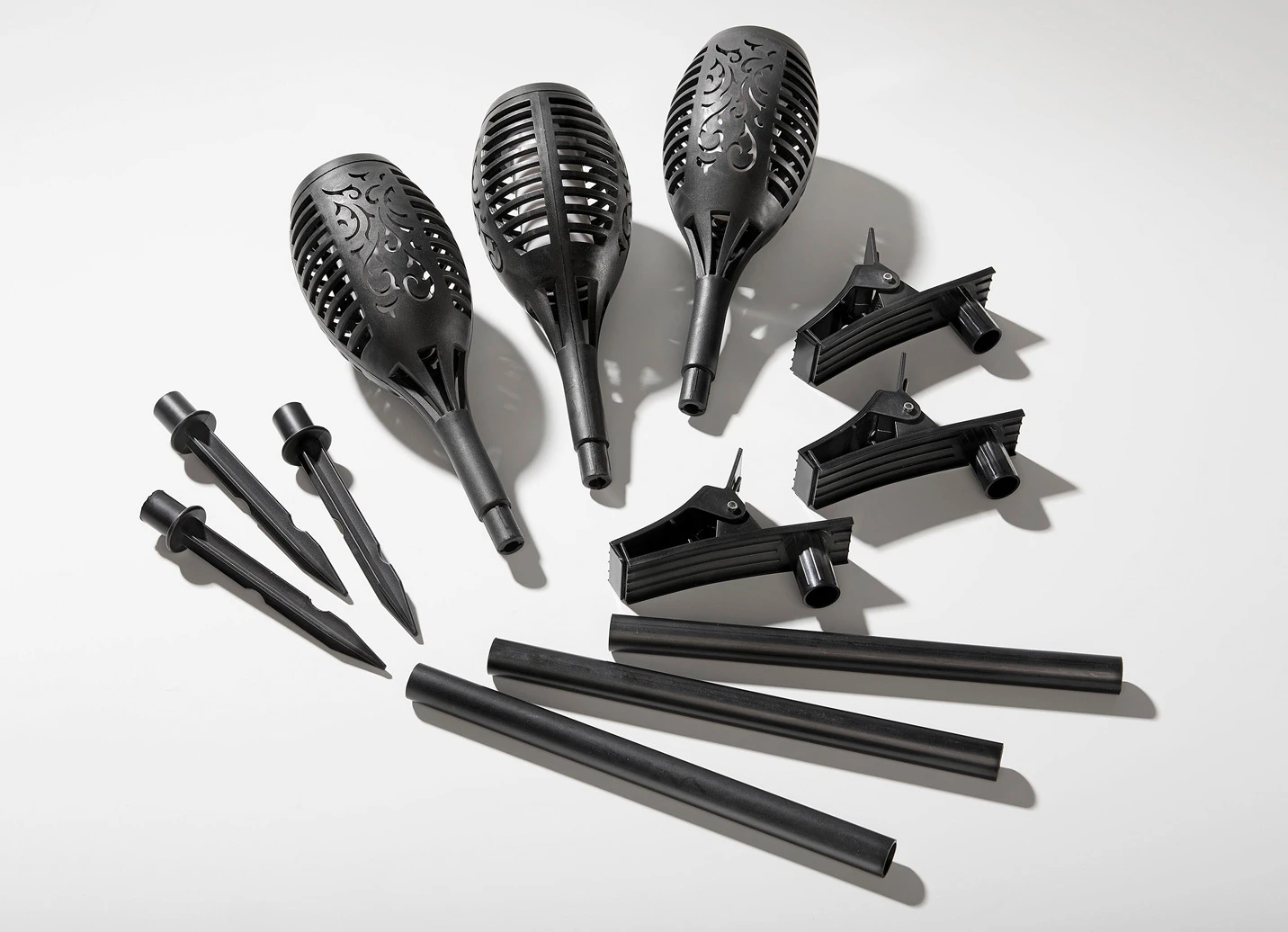 Solar-Fackel, 3er-Set, zum Klemmen oder Stecken in Schwarz.