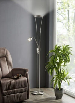 Für ein edles und stilvolles Highlight in Ihrem Wohnraum sorgt dieser hochwertige Standfluter aus Metall mit Schirm aus Acryl. Mit senkrechtem Fluter und beweglichem Lesearm. Getrennt voneinander schaltbar und dimmbar.