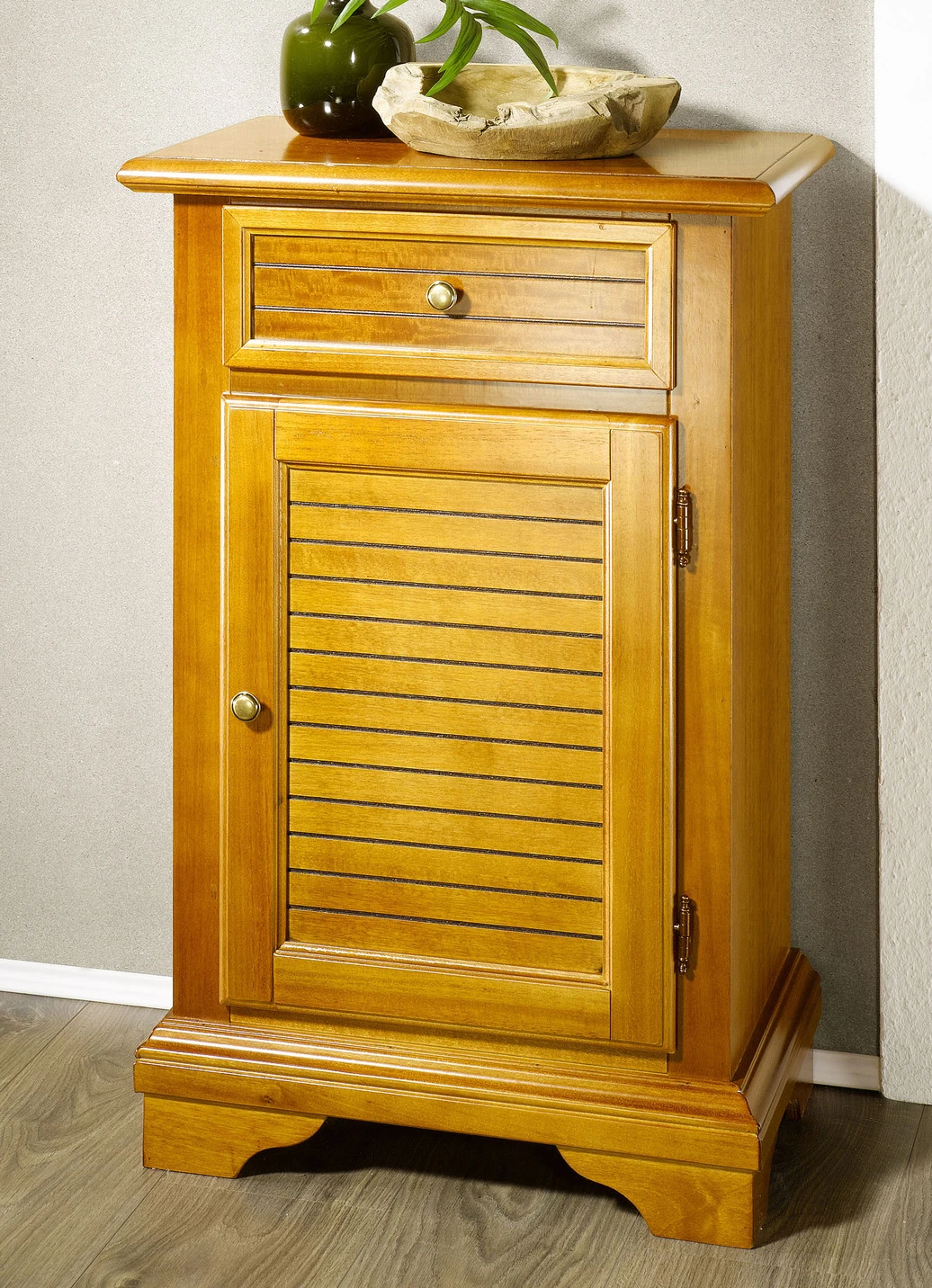Kommode, 1-türig: 1 Tür, dahinter 1 fester Boden, darüber 1 Schublade. Maße: B53xH83xT37 cm