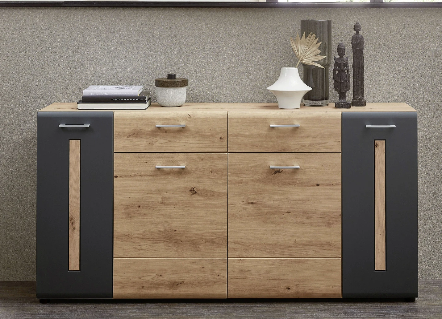 Trendstarkes Sideboard in Artisan Eiche-Graphit.