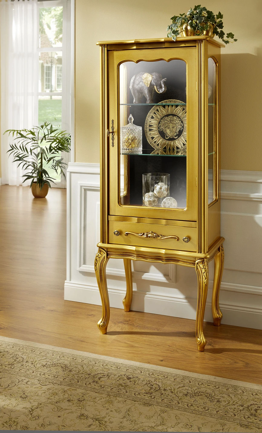 Vitrine, 1-türig in Gold.