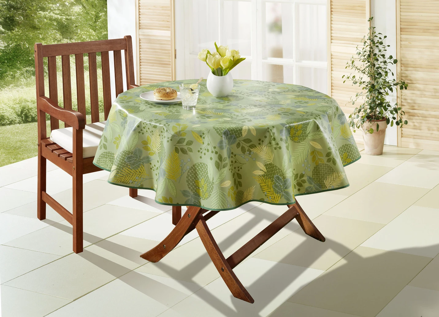 Mit einem schönen, natürlichen Blätter-Motiv präsentiert sich diese tolle Wachstuch-Tischdecke, die sich völlig problemlos abwaschen lässt und somit für jede Gelegenheit – auch für den Einsatz im Freien – geeignet ist. Mit farblich abgestimmtem Paspelband. Die Qualität: 100% PVC, phthalatfrei
