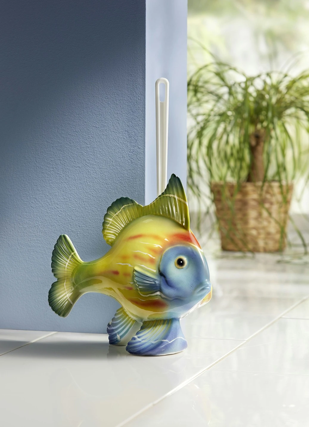 Diese schöne WC-Garnitur in Form eines Fisches wurde von Kunsthandwerkern aus hochwertiger Keramik gefertigt und sorgfältig bemalt. Die Lieferung erfolgt mit Toilettenbürste. B30xH26,5xT13 cm.